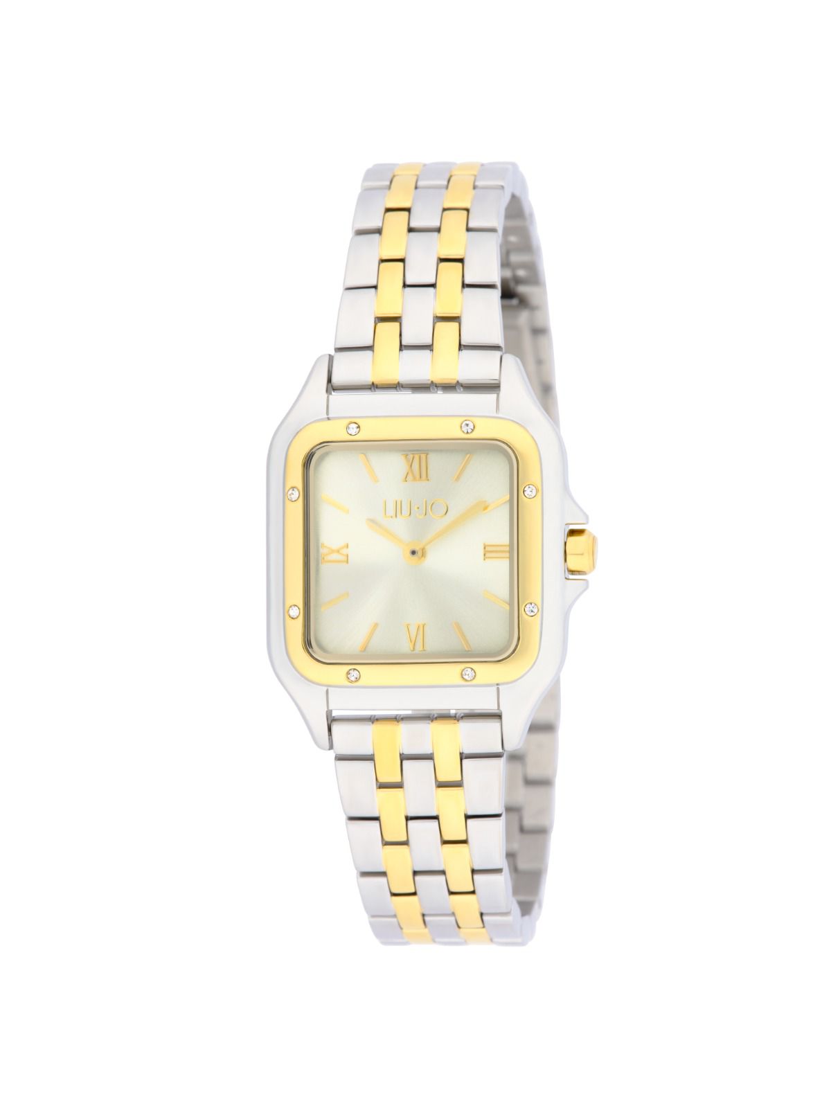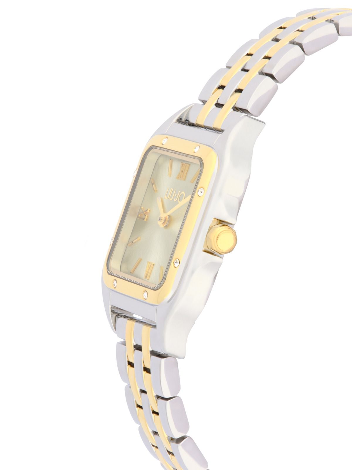 Orologio da donna di Liu Jo della collezione Shimler. La cassa è in acciaio di colore argento/oro da 27.5 x 36mm. Il vetro è minerale. Il colore del quadrante è champagne/oro. Il cinturino è in acciaio di colore argento/oro. La resistenza all'acqua è di 3 ATM.