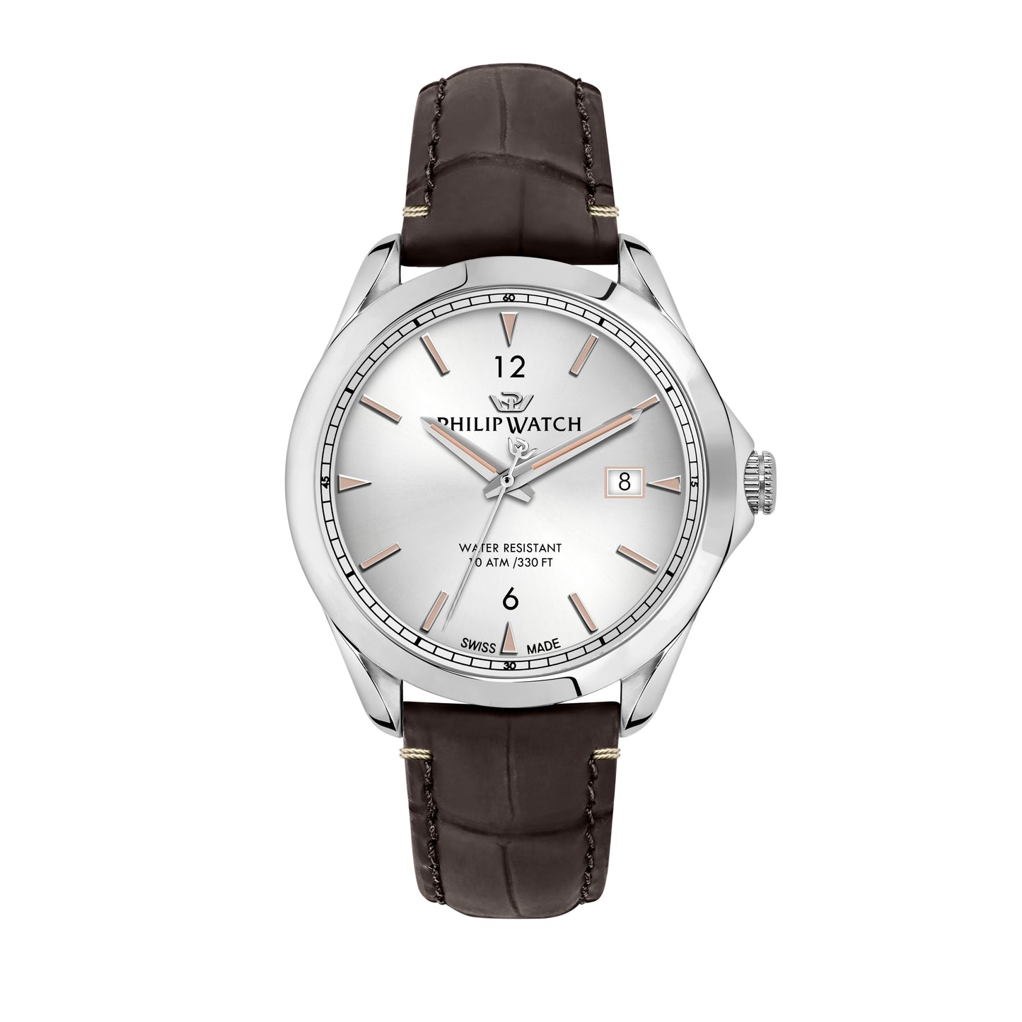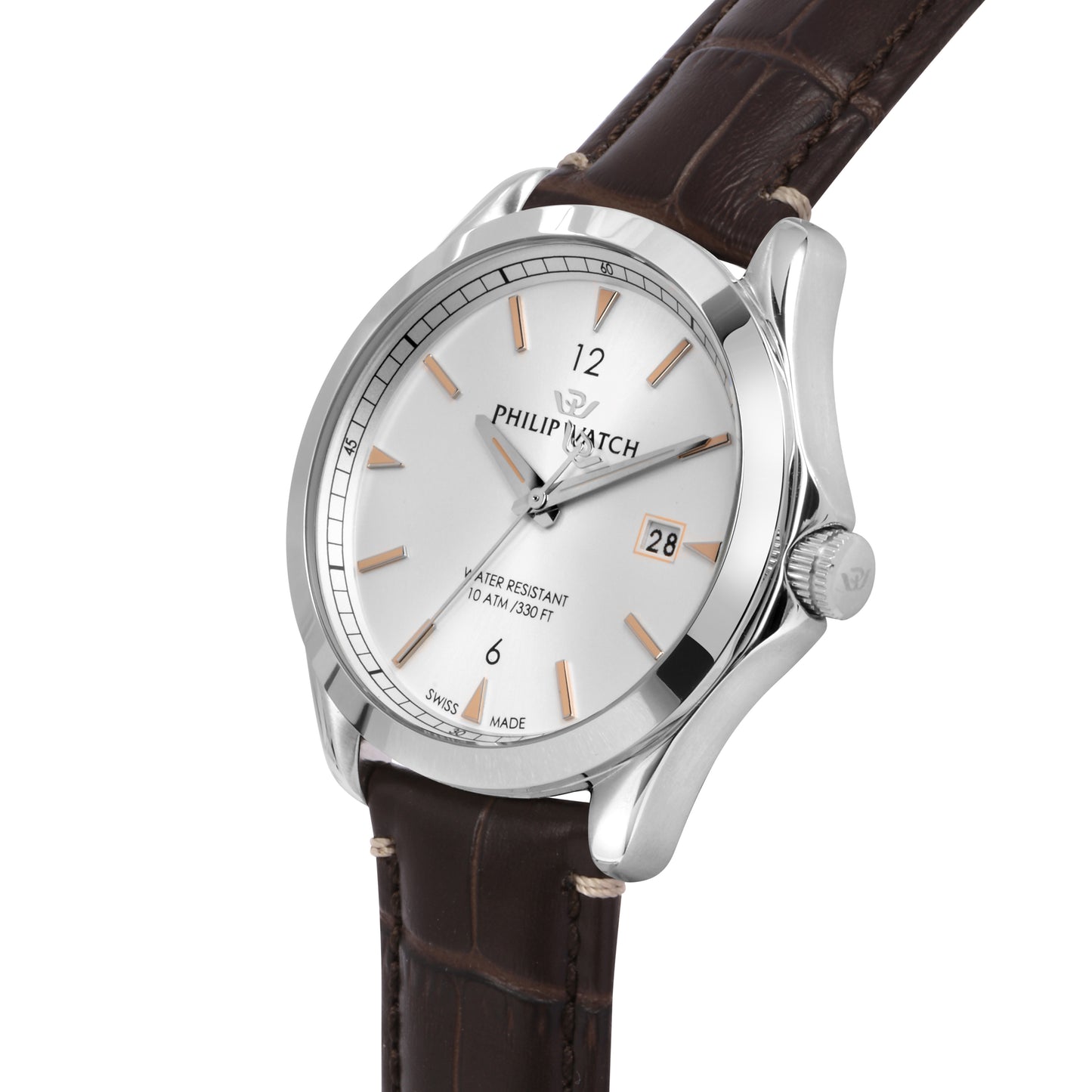 Materiale cinturino: Bracciale in pelle, Colore cinturino: Nero, Colore quadrante: Silver, Materiale: Cuoio, Acciaio Inox, Genere : Uomo, Fibbia: Fibbia ardiglione, Garanzia: Ufficiale 2 anni Philip Watch, Confezione: Originale Philip Watch.