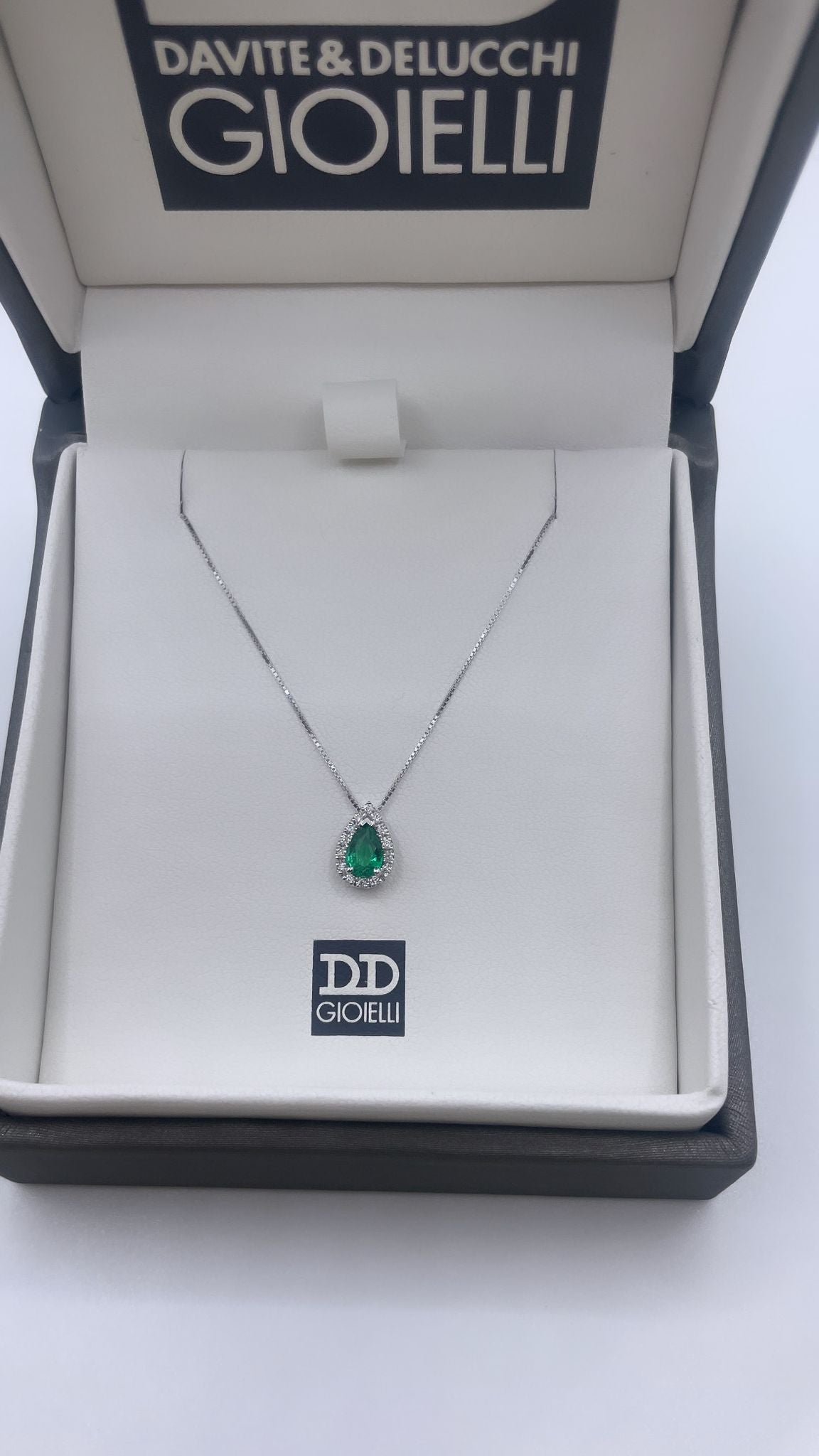 Girocollo a goccia in oro 18kt, smeraldo e diamanti.