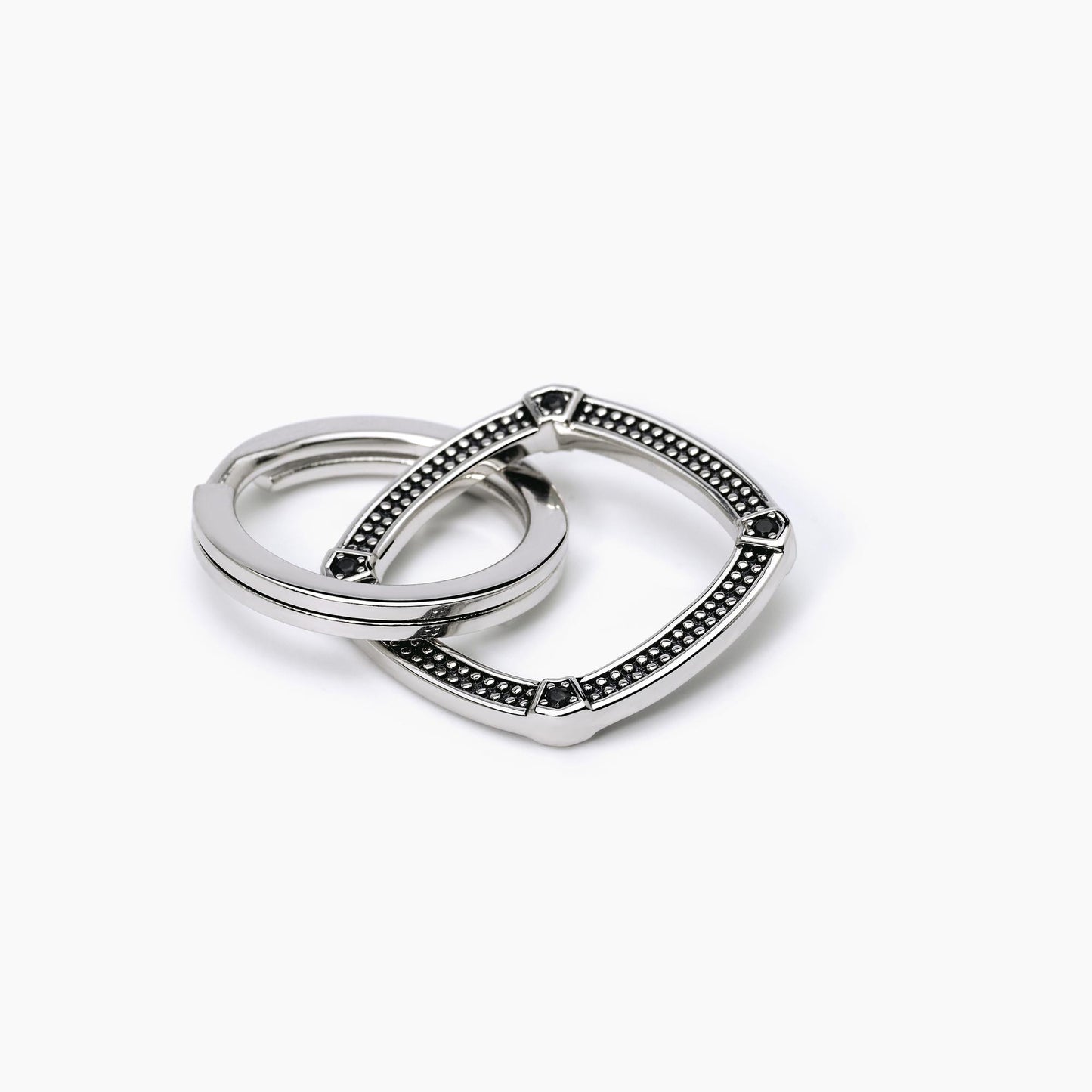 Portachiavi in argento con ciondolo borchiato e pietre nere