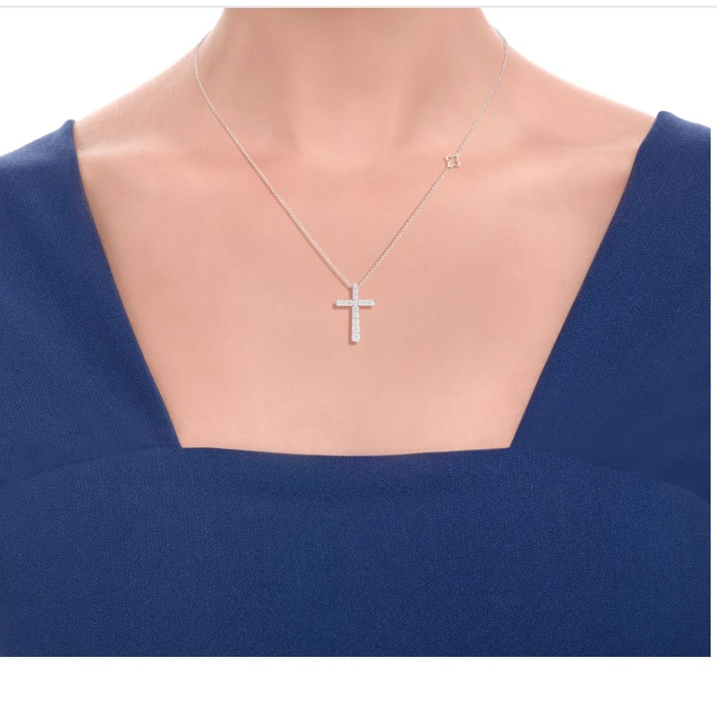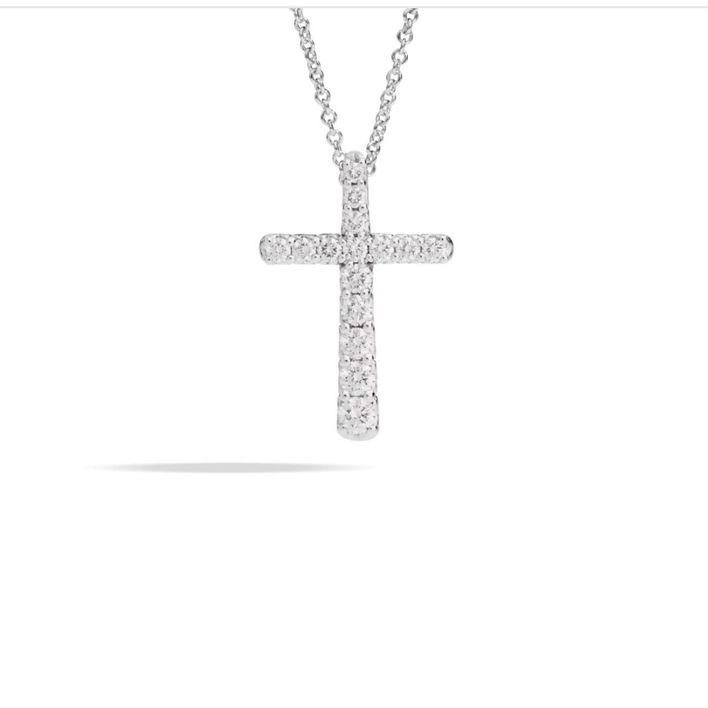 Collana con pendente a croce in oro bianco 18 kt e diamanti taglio brillante (lunghezza 45 cm).