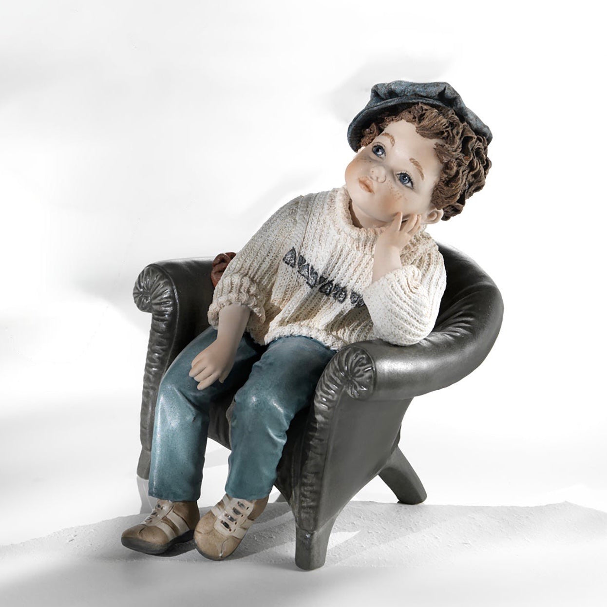 Figura in porcellana raffigurante un bimbo seduto su una poltrona grigia. Indossa un paio di jeans e un maglioncino color panna con un motivo a triangoli sul petto, con delle scarpe da ginnastica marroni e un berretto azzurro e marrone sulle ventitrè. Siede annoiato con il viso appoggiato ad una mano, senza troppa voglia di andare a giocare con la sua sorellina Pierina.