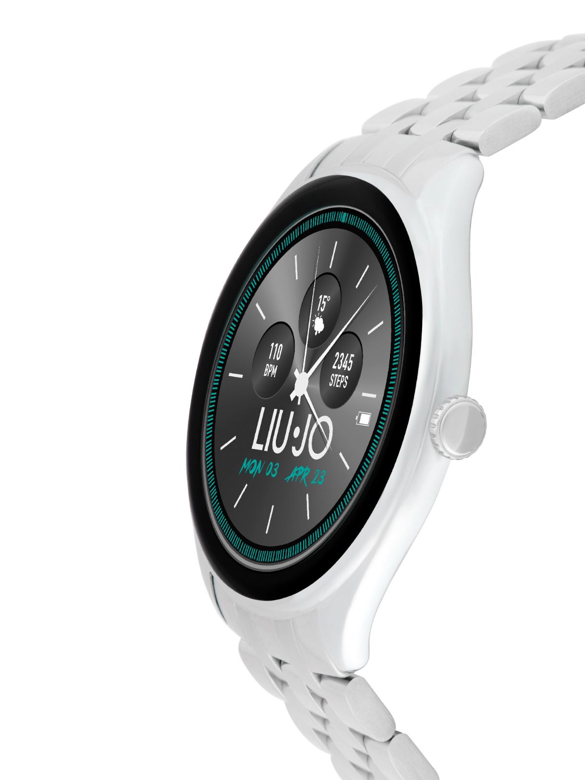Smartwatch slim man di Liu Jo con cassa in zinco e acciaio di colore argento. Dimensioni cassa: diametro 45,5 mm. Display Full touch 1.43 inch HD screen Amoled. Il cinturino è in Stainless steel di colore argento.